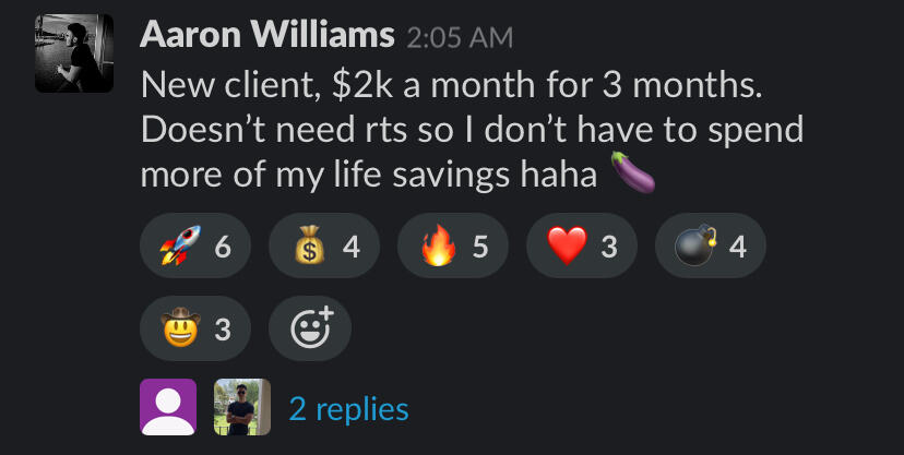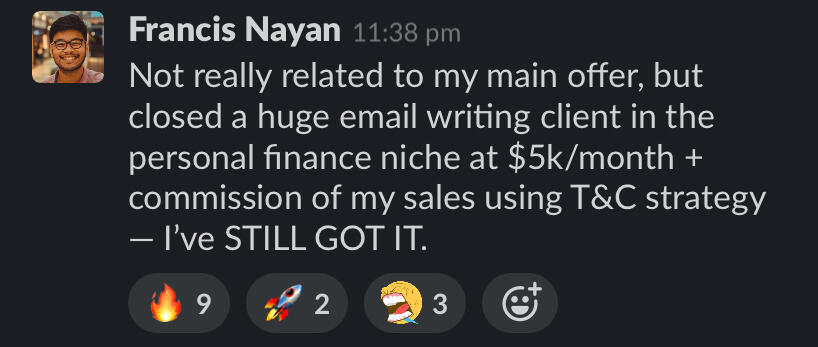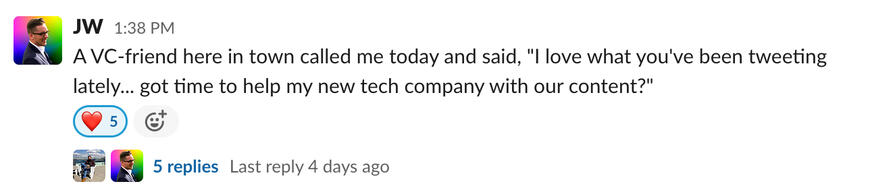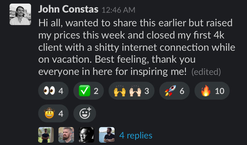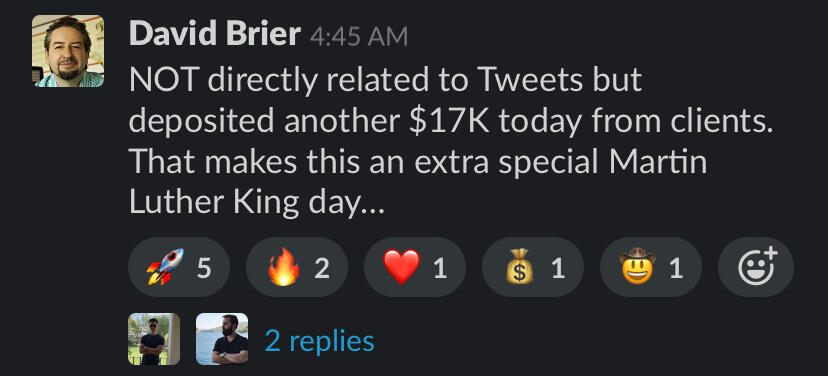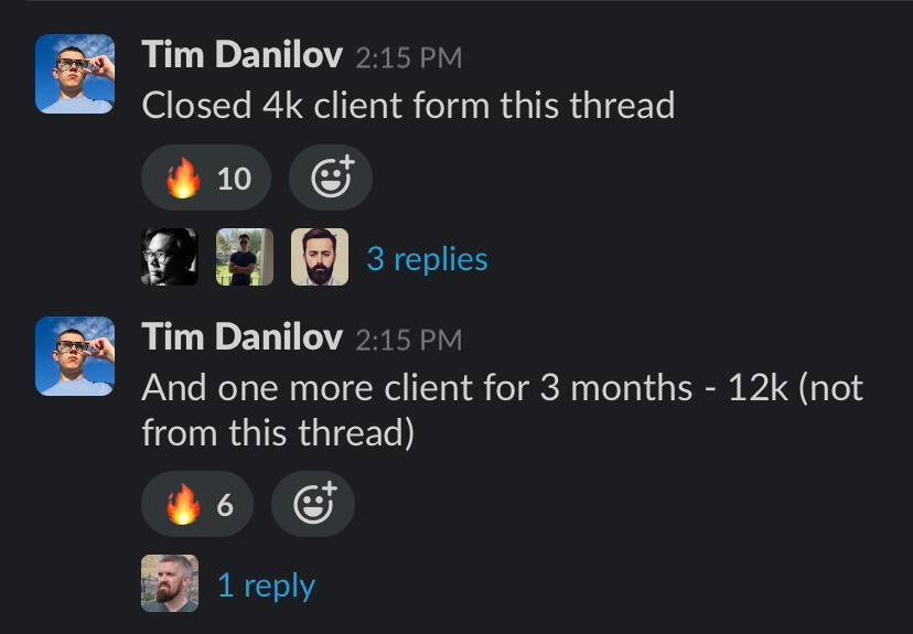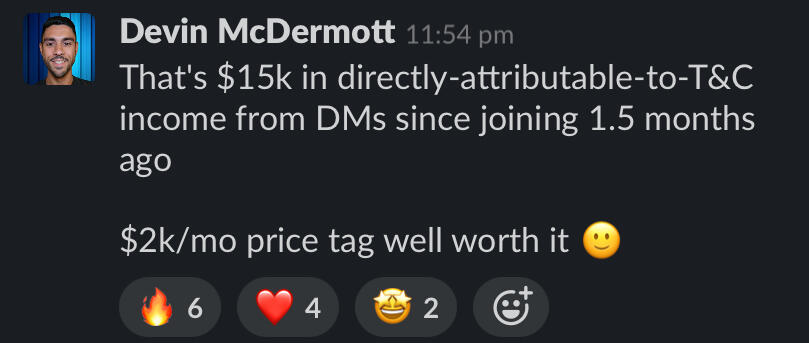 Having an audience makes many things easier - but it also makes some things harder.Your good decisions turn into great decisions.But your bad decisions turn into seriously bad outcomes.In our experience, the best way to solve this problem is to learn from others who understand your unique situation.They're tough to find. But when you do, it's life changing.And that's what Tweets & Clients is for.Joining T&C gives you immediate access to other big players who are going through the same things as you. Members consistently call it "a lifesaver".