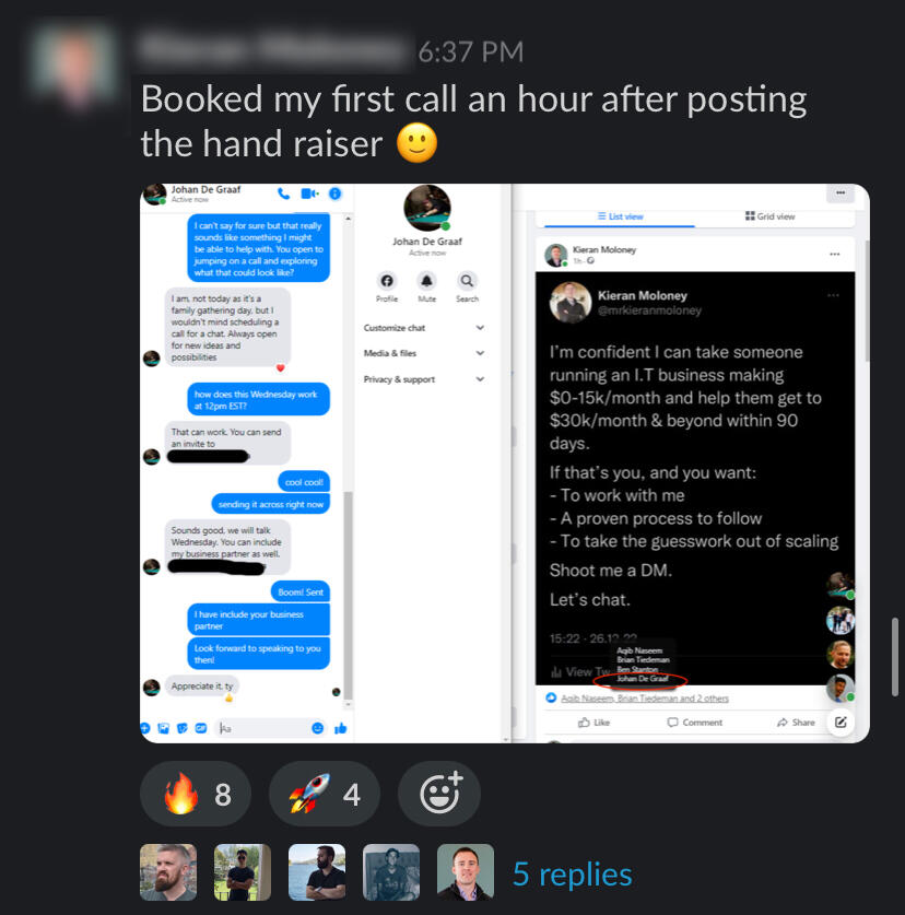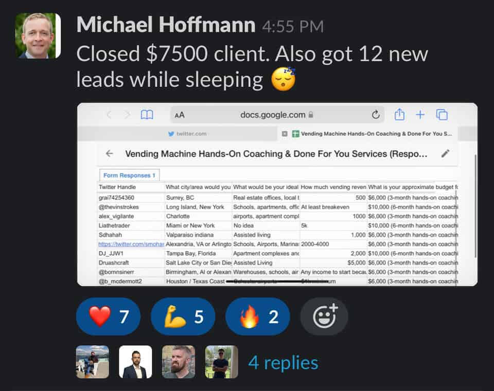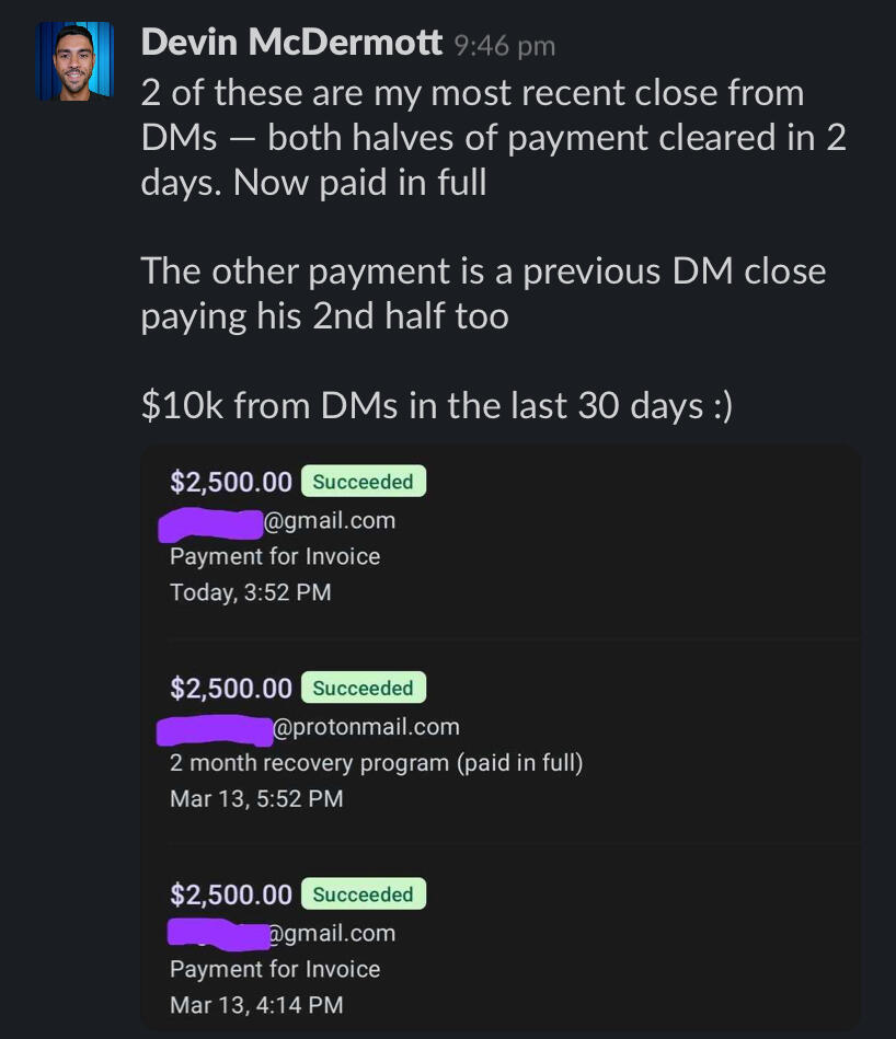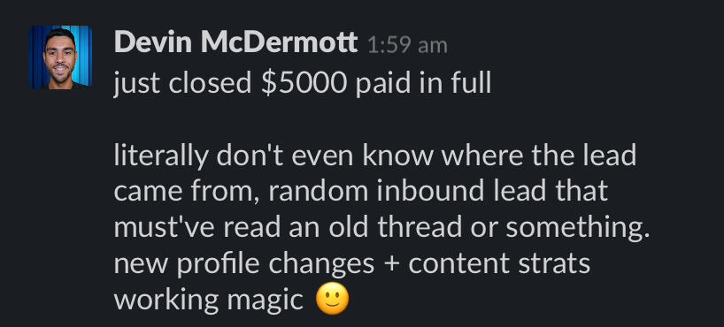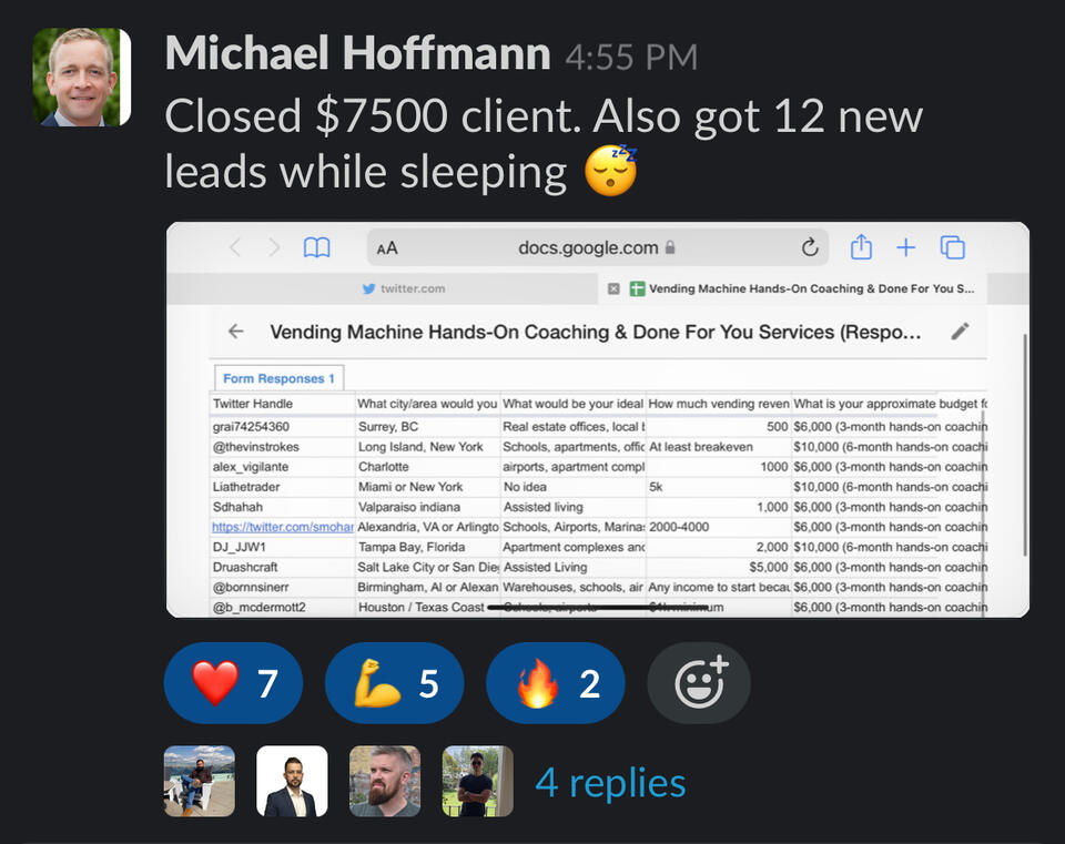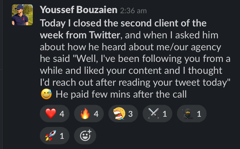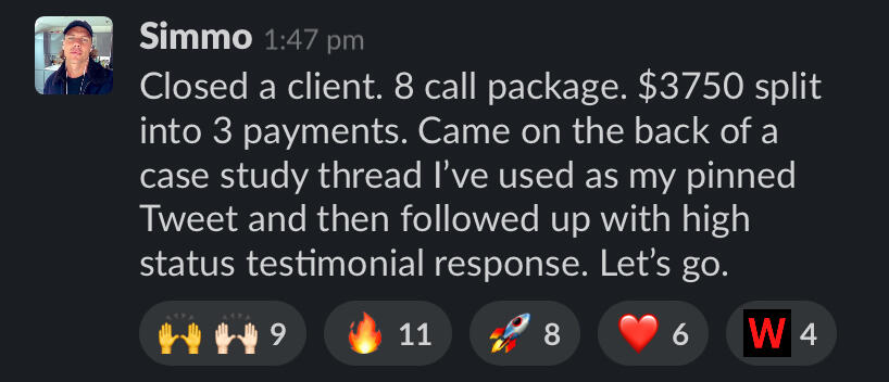 The results shown here are client results, and do not indicate the average success rate.They are not typical. Tweets & Clients is not a “get rich quick scheme” and we do not sell a business opportunity. We exclusively work with people who have experience operating a business and have more than 3,000 followers.The results shown are not a guarantee. They are dependant on a multitude of factors such as previous experience, work you put in and how sticky you follow the process.